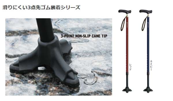 シナノ 自立式ステッキ 対応身長156cm~180cm 軽量 滑りにくい3点先ゴム