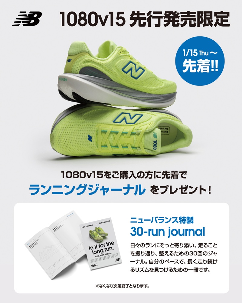 1080 v15 お買い上げ先着で『ニューバランス特製 ランニングジャーナル』をプレゼント!